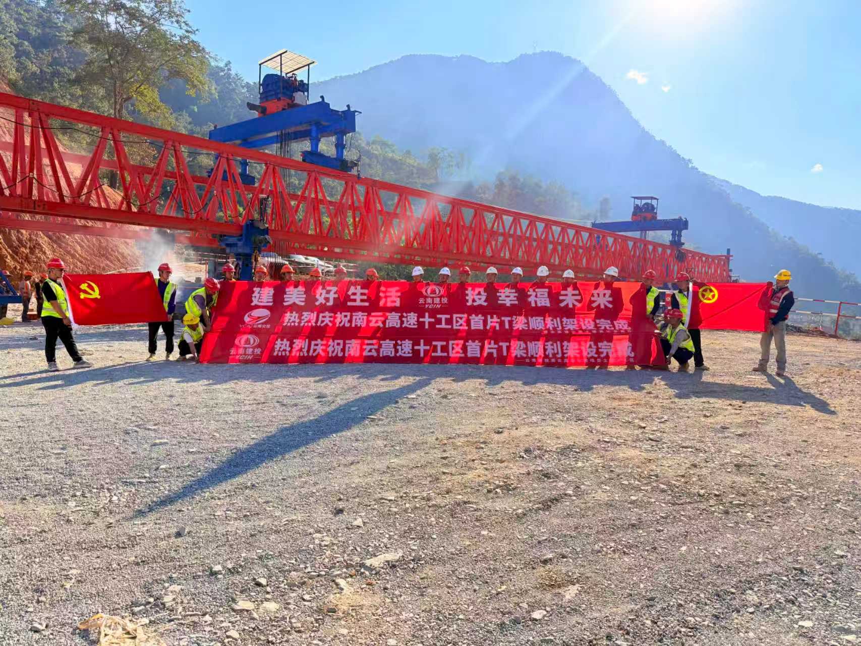 【奮戰(zhàn)80天決勝全年度】南云高速土建十工區(qū)首片T梁順利架設(shè)完成